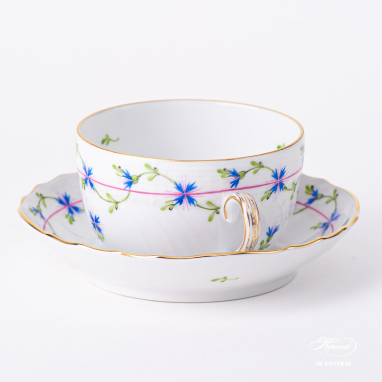 Herend porcelain Blue Garland Tea Cup with Saucer.