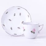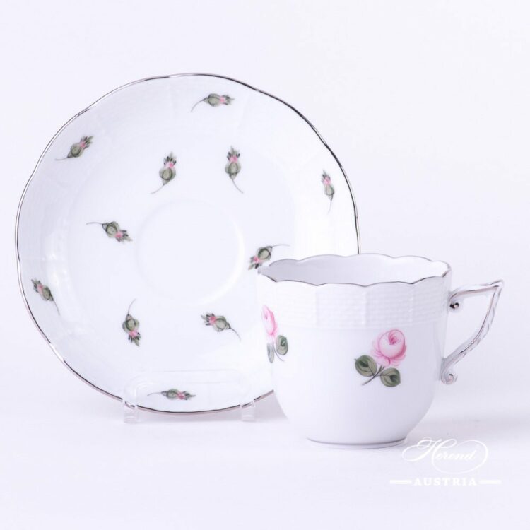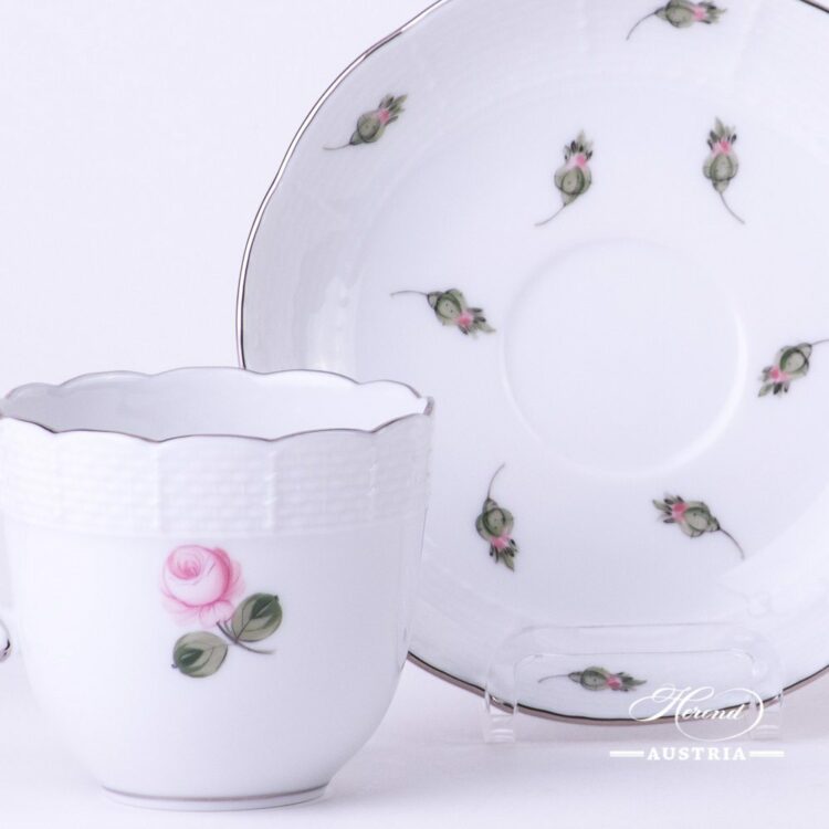 Herend porcelain Coffee Cup with Saucer – Herend Vienna Rose Platinum pattern.