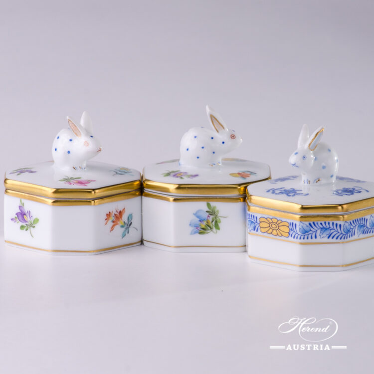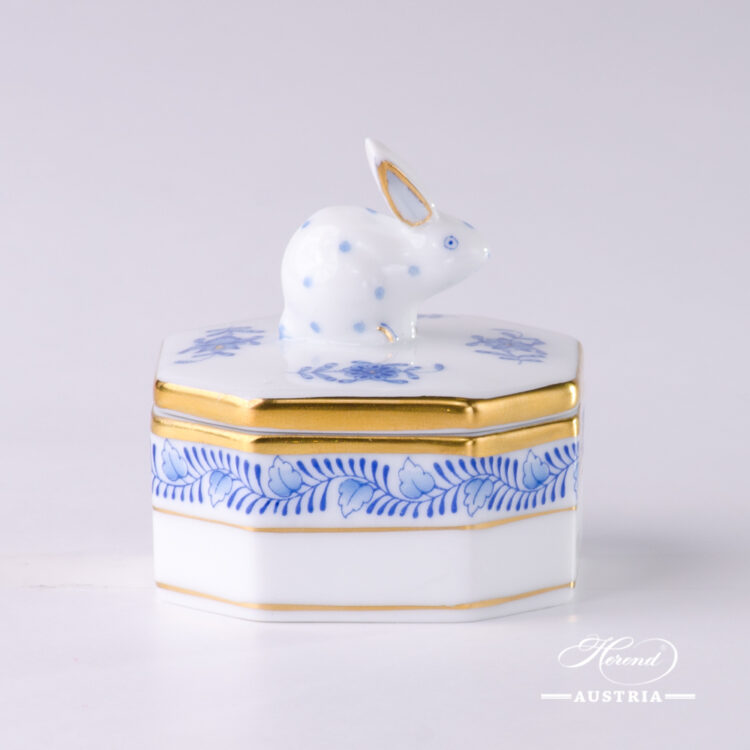 Apponyi-Blue Fancy Box with Rabbit Knob – 6105-0-25 AB – Herend Porcelain