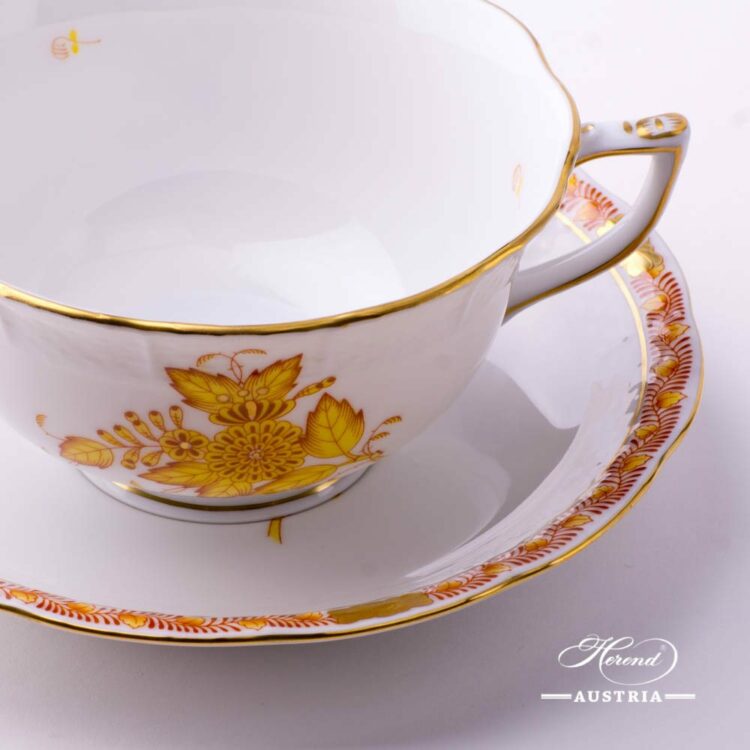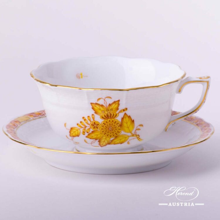 Tea Cup and Saucer – Herend Chinese Bouquet Yellow / Apponyi Yellow AJ decor.