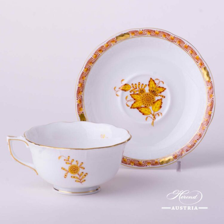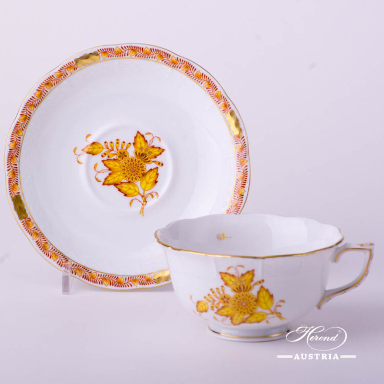 Herend Chinese Bouquet Butterscotch / Apponyi Yellow design – Tea Cup and Saucer.