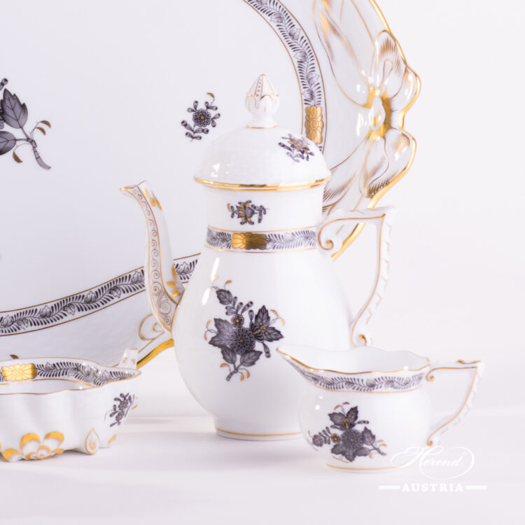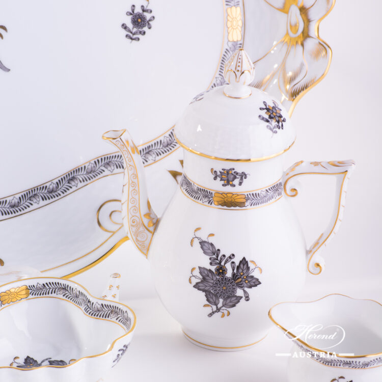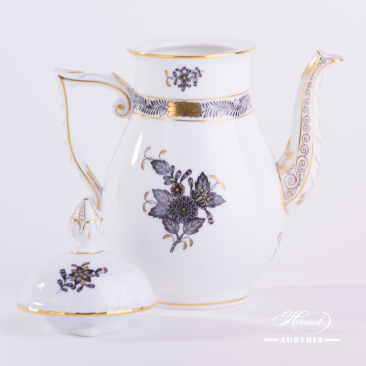 Herend Coffee Pot with Acanthus Knob – Herend Chinese Bouquet Black – ANG.
