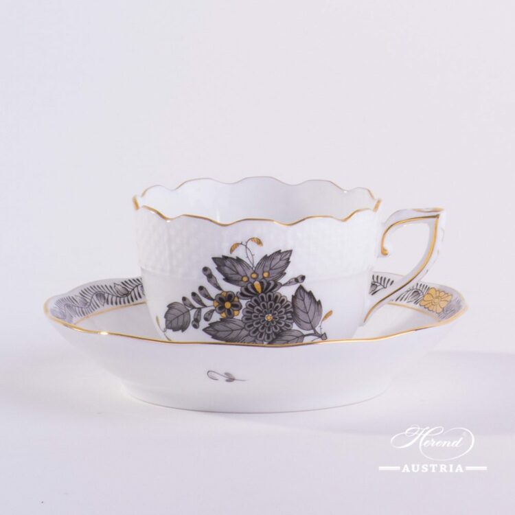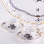 The origin of the pattern is associated with Count Albert Apponyi. Count Apponyi held a Gala Dinner for more than 60 guests. He ordered a new design, urgently. The Manufactory offered him a simplified version of Fleurs des Indes (Indian Basket decor).