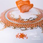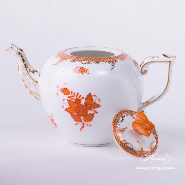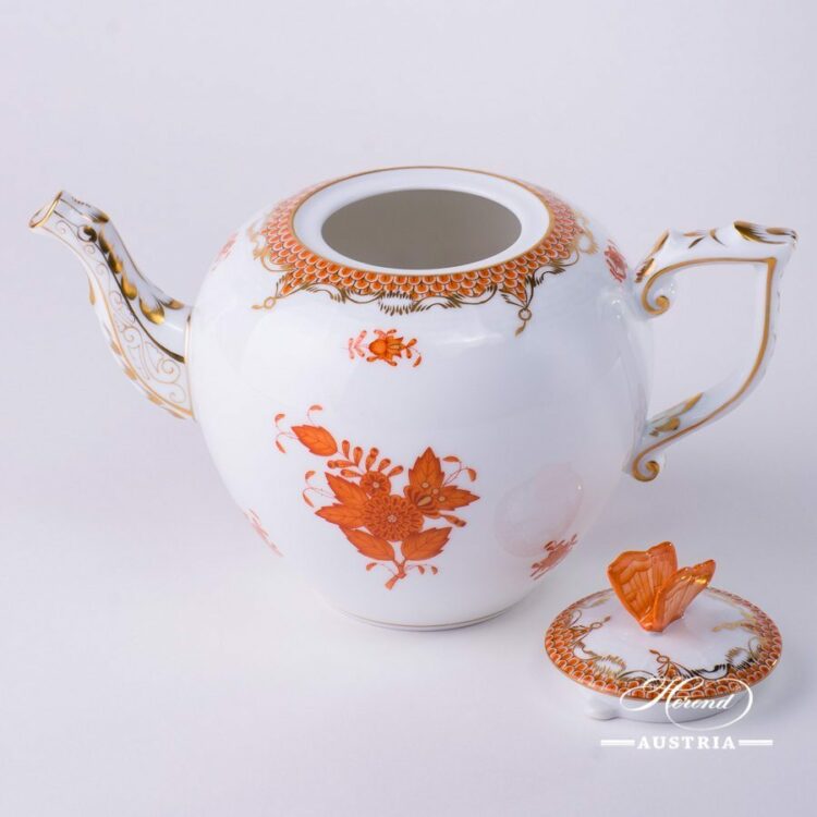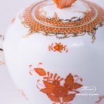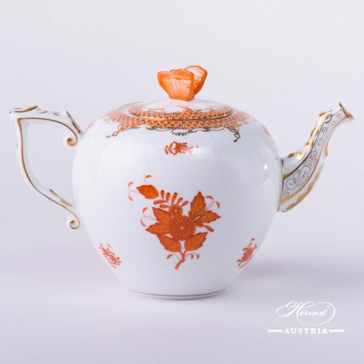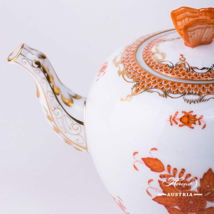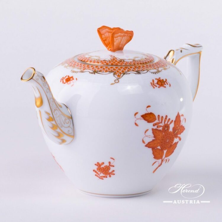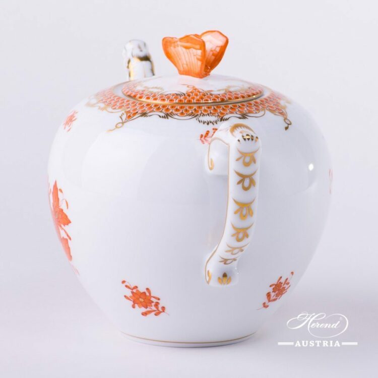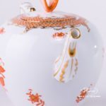 Herend porcelain Tea Pot with Butterfly Knob – Herend Apponyi Orange Fish Scale pattern.