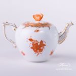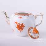 Herend Apponyi Orange AOG-ETH Tea Pot painted with orange fish scale.