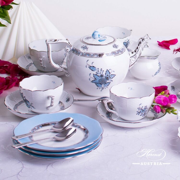 Tea Set for 6 Persons – Herend Chinese Bouquet Turquoise / Apponyi ATQ3-PT pattern.