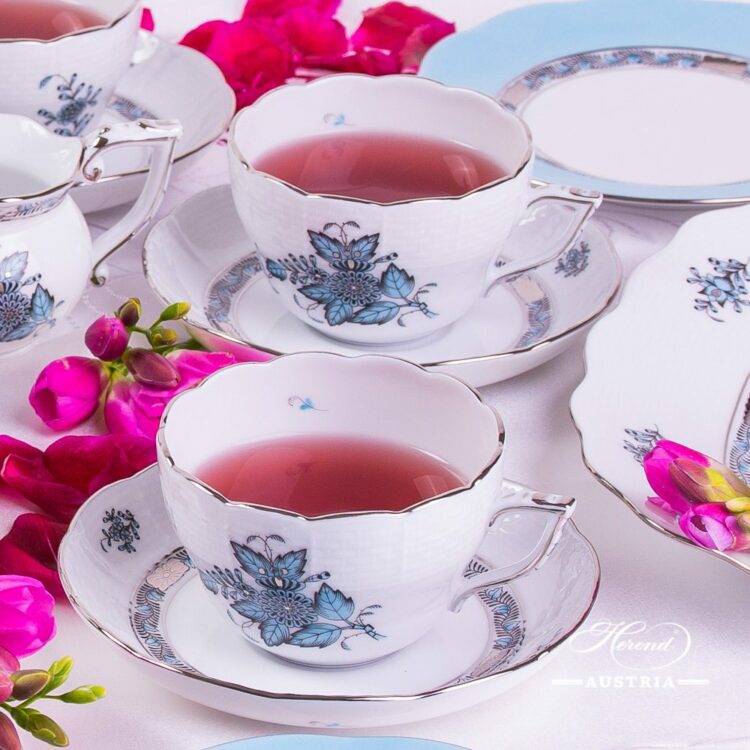 Herend fine china – Apponyi ATQ3-PT – Turquoise w. Platinum design.