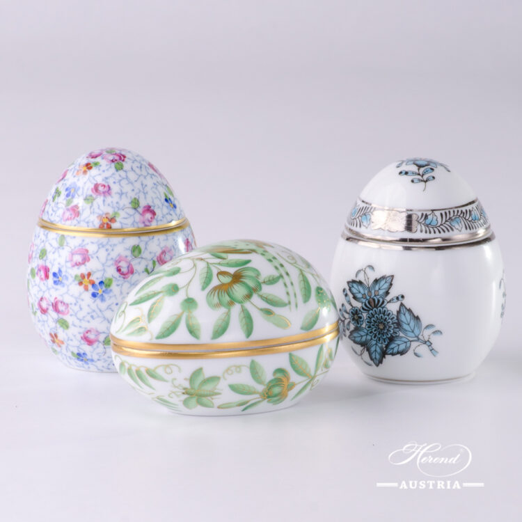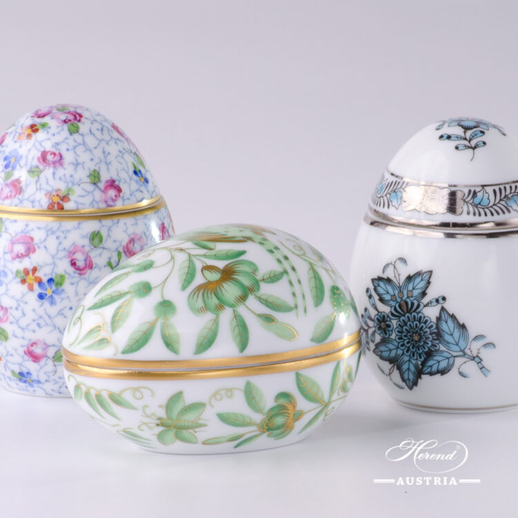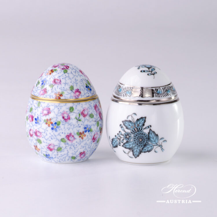 Egg Shaped Bonbonniere / Candy Jar – Herend Chinese Bouquet / Apponyi Turquoise – ATQ3-PT pattern.
