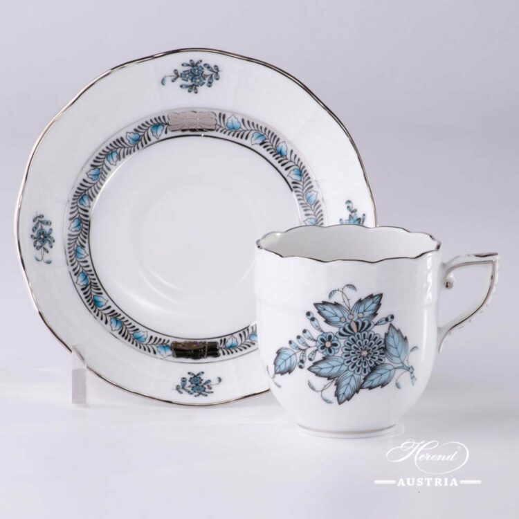Coffee / Espresso Cup and Saucer – Chinese Bouquet Turquoise / Apponyi ATQ3-PT pattern.