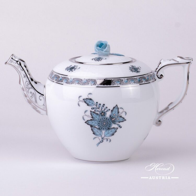 Tea Pot with Rose Knob – Chinese Bouquet Turquoise / Apponyi ATQ3-PT pattern.