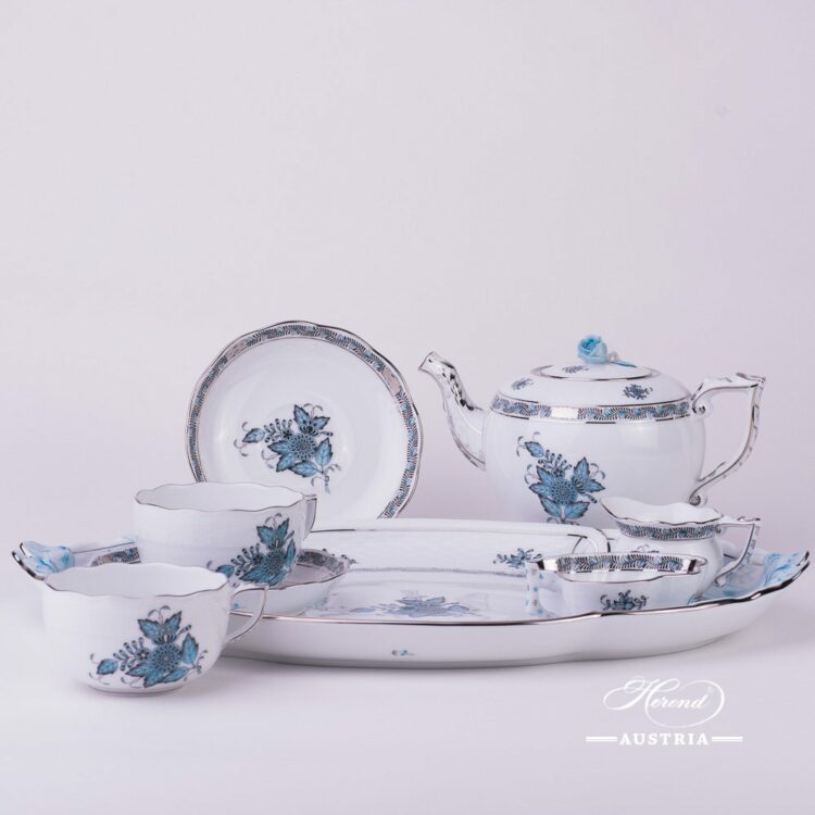 Tea Set for 2 Persons – Herend Chinese Bouquet Turquoise / Apponyi ATQ3-PT pattern.
