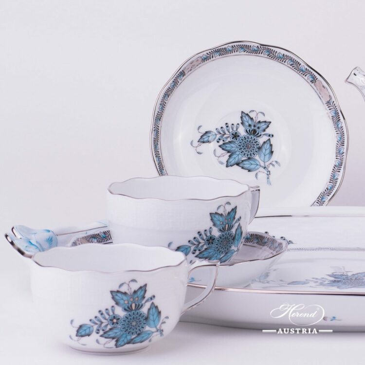 Herend fine china – Apponyi ATQ3-PT – Turquoise w. Platinum design.
