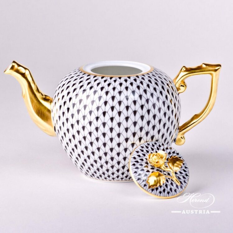 Tea Pot with Rose Knob – Herend Black Fish Scale VHN pattern.