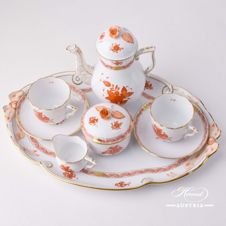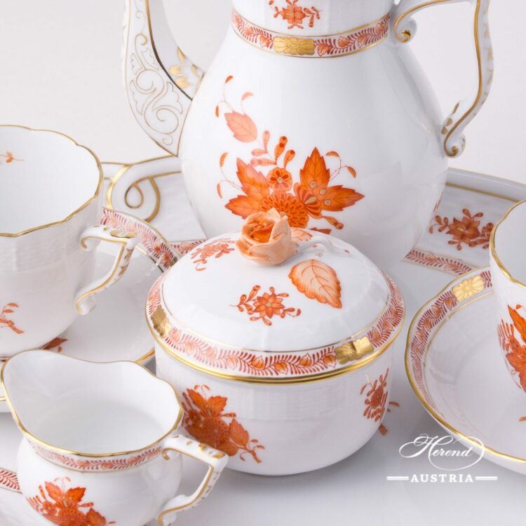 Chinese Bouquet Rust/Apponyi Orange – Coffee Set for 2 Persons.