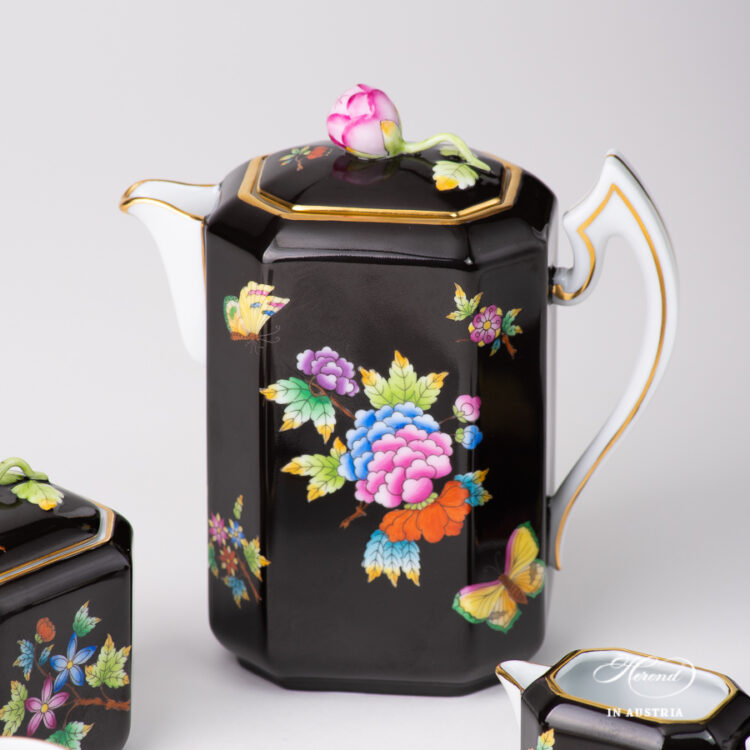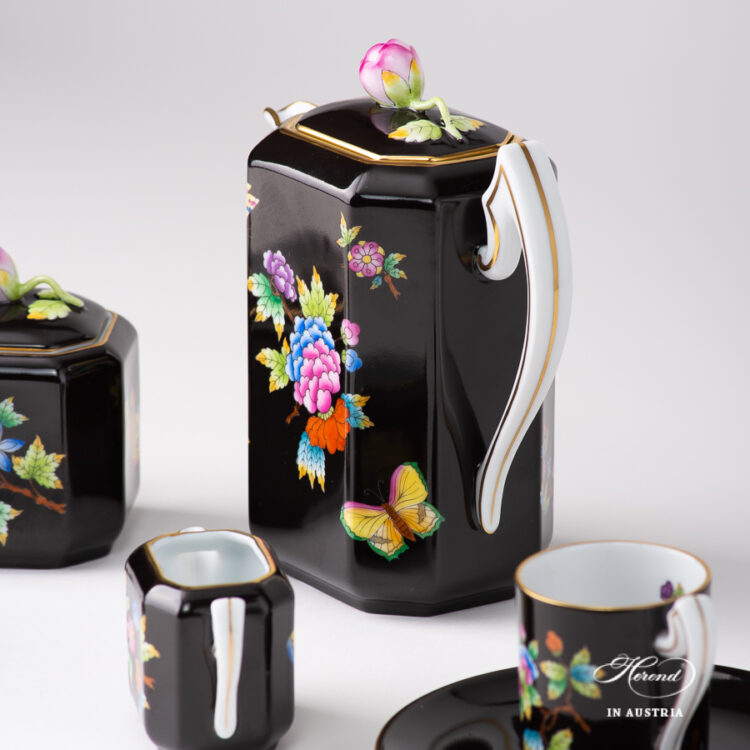 Herend fine china Coffee – Espresso Set for Two Persons – Herend, Queen Victoria on Black Background – VE-FN pattern.