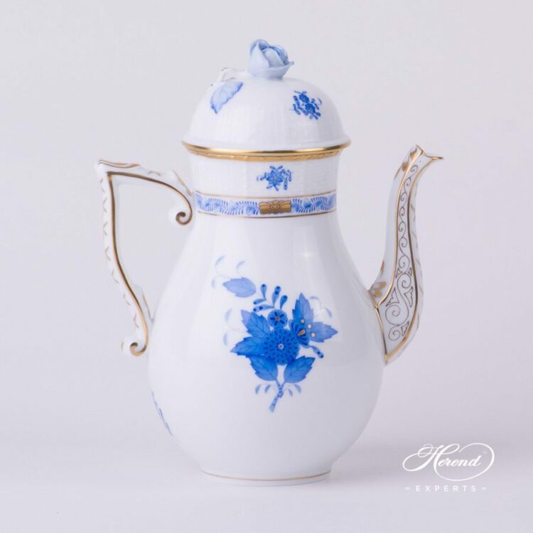 Herend porcelain Coffee Pot with Rose Knob – Herend Apponyi Blue decor.