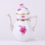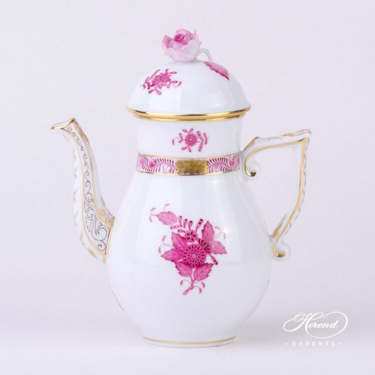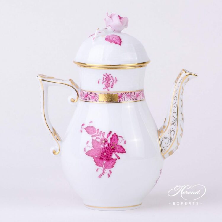Herend porcelain Coffee Pot with Rose Knob – Herend Apponyi Pink decor.