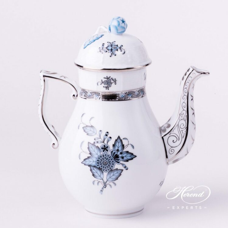 Herend porcelain Coffee Pot w. Bud Knob – Herend Chinese Bouquet / Apponyi Turquoise – ATQ3-PT pattern.