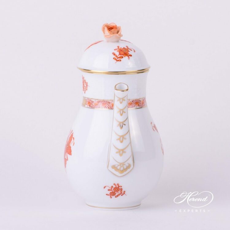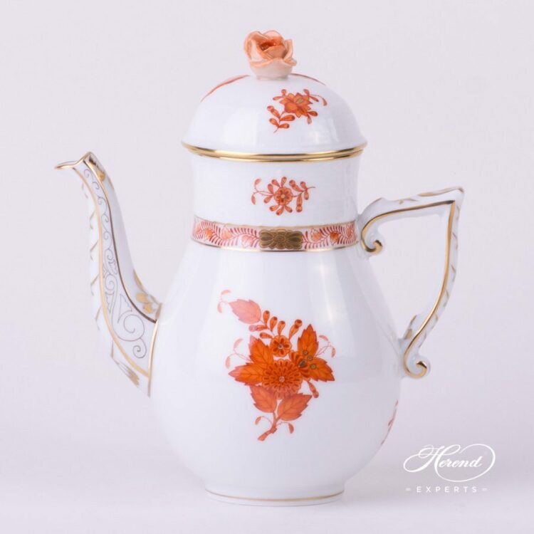Herend porcelain Coffee Pot with Rose Knob – Herend Chinese Bouquet Rust / Apponyi Orange – AOG design.