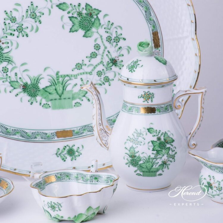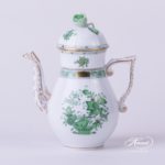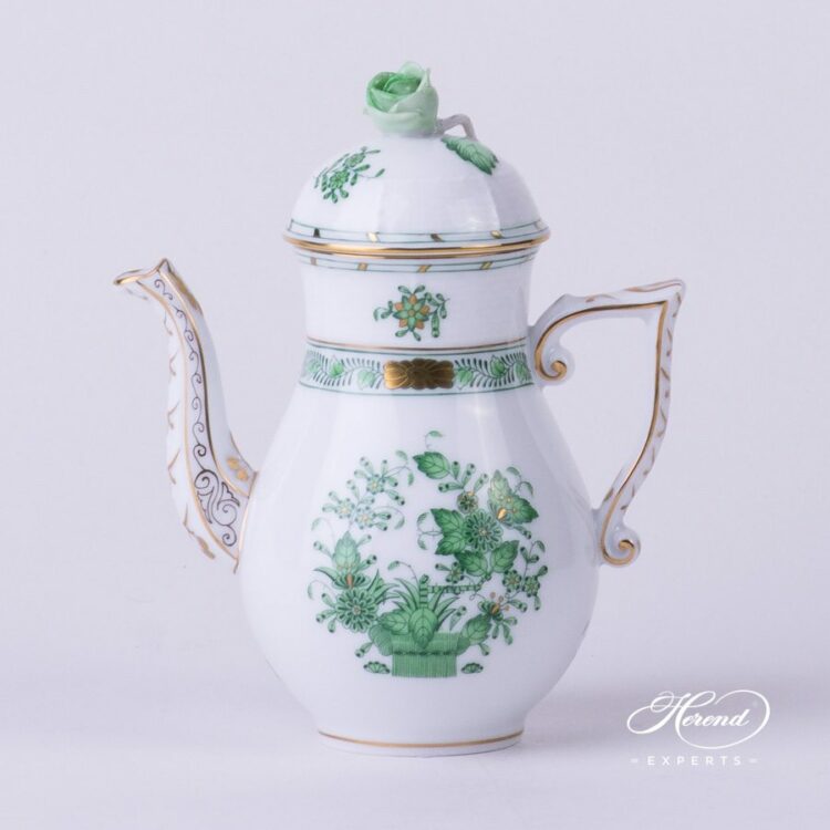 Herend fine china Coffee Pot w. Rose Knob – Herend Indian Basket Green – FV pattern.