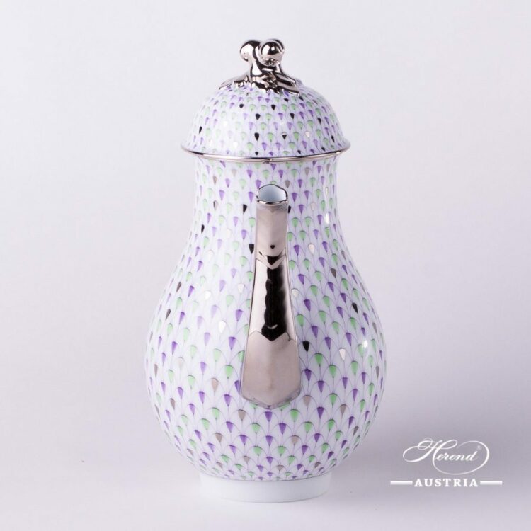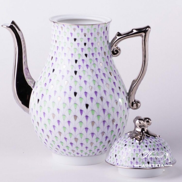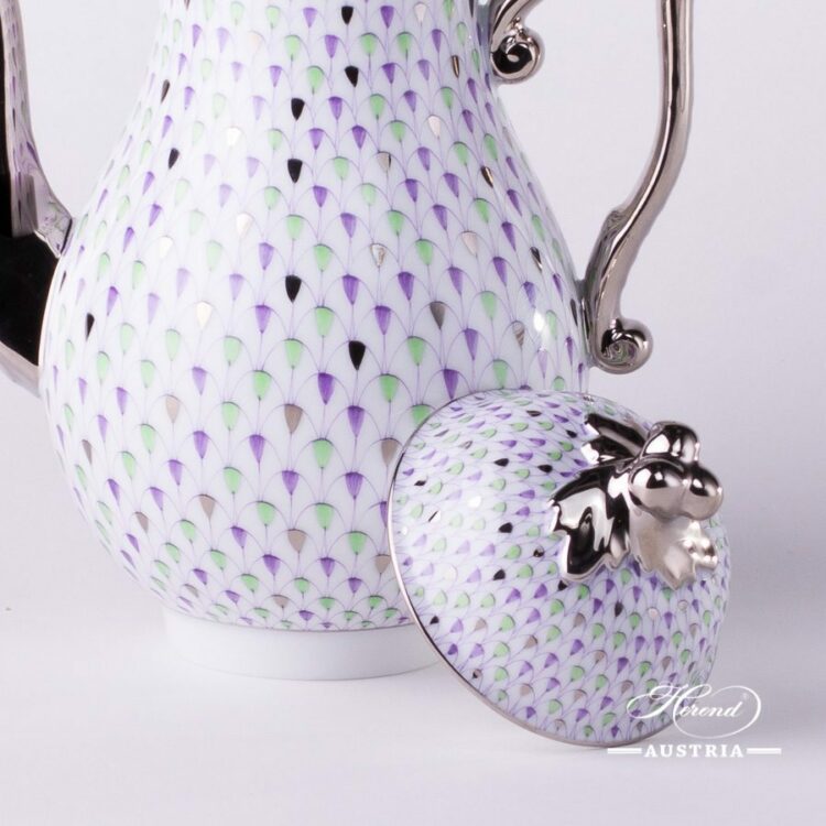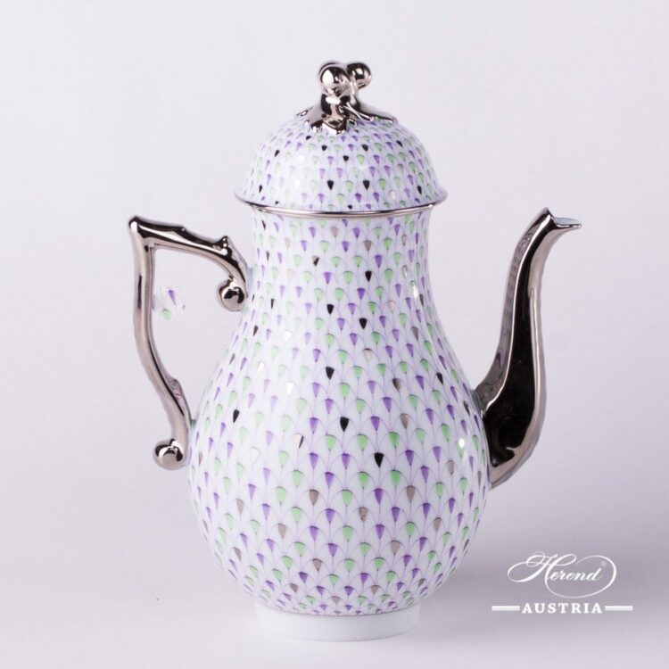 Coffee Pot with Twisted Knob – Herend Special Fish Scale w. Platinum pattern.