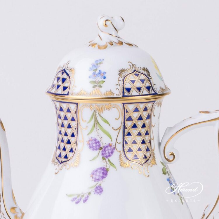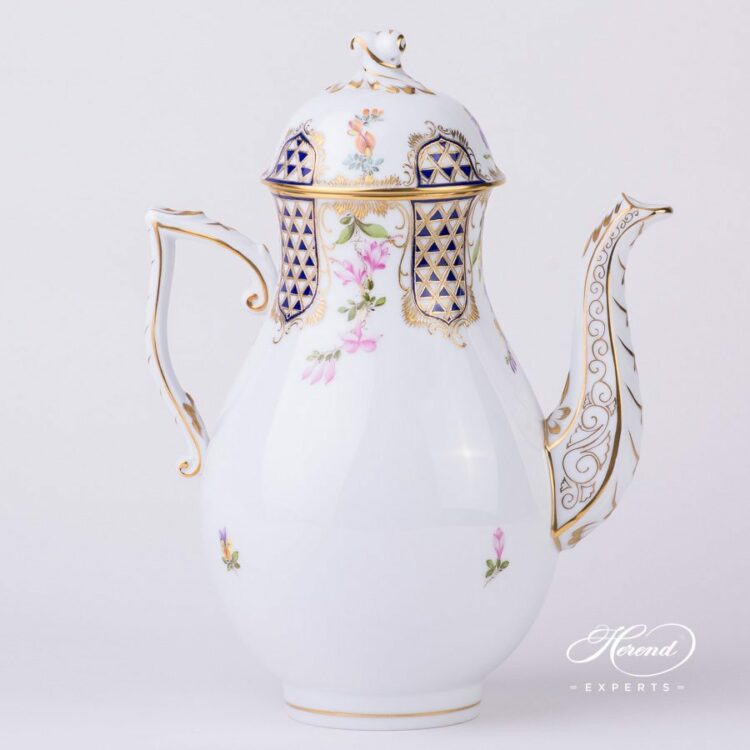 Herend porcelain Coffee Pot with Twisted Knob – Herend Mosaic and Flowers decor.