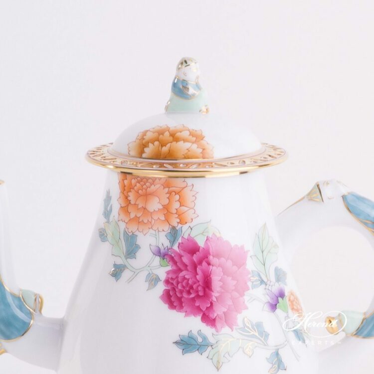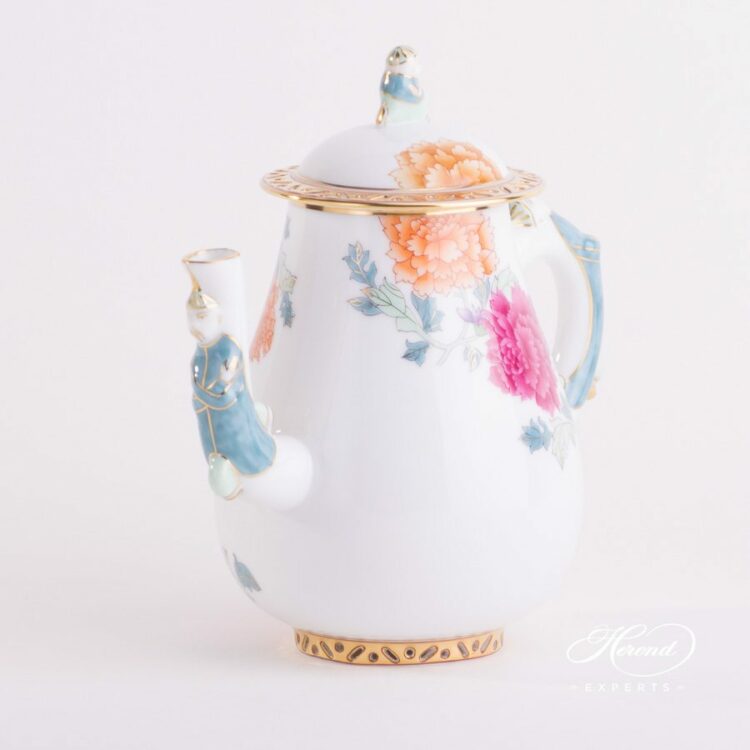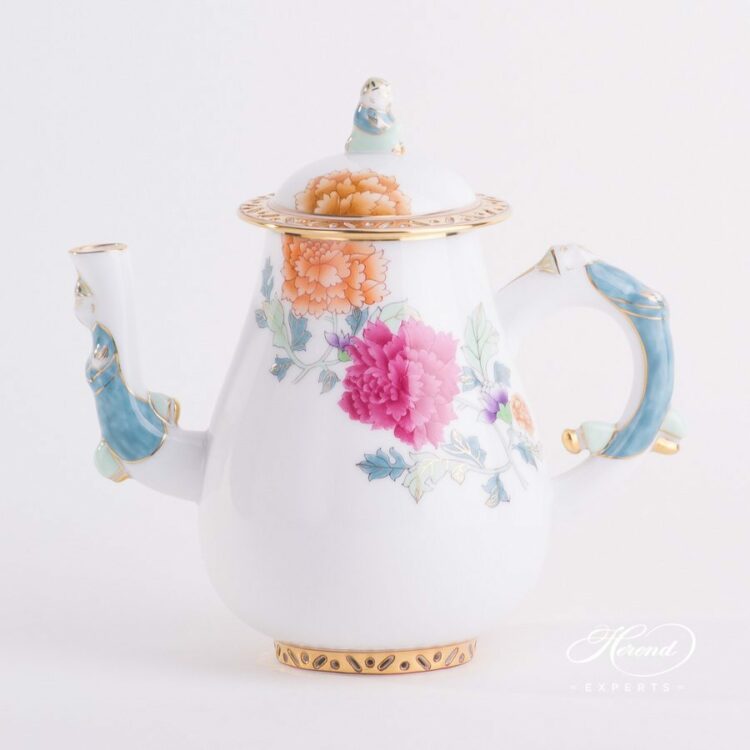Herend porcelain Coffee / Espresso Pot with Mandarin Knob – Herend Pink Peony decor.