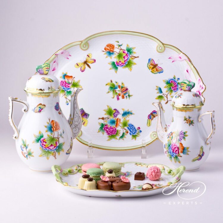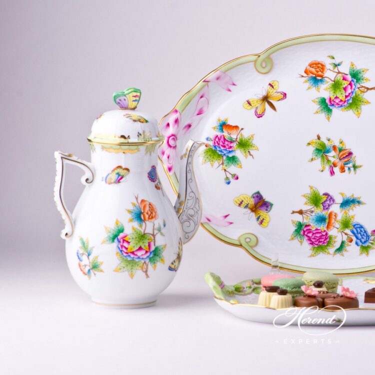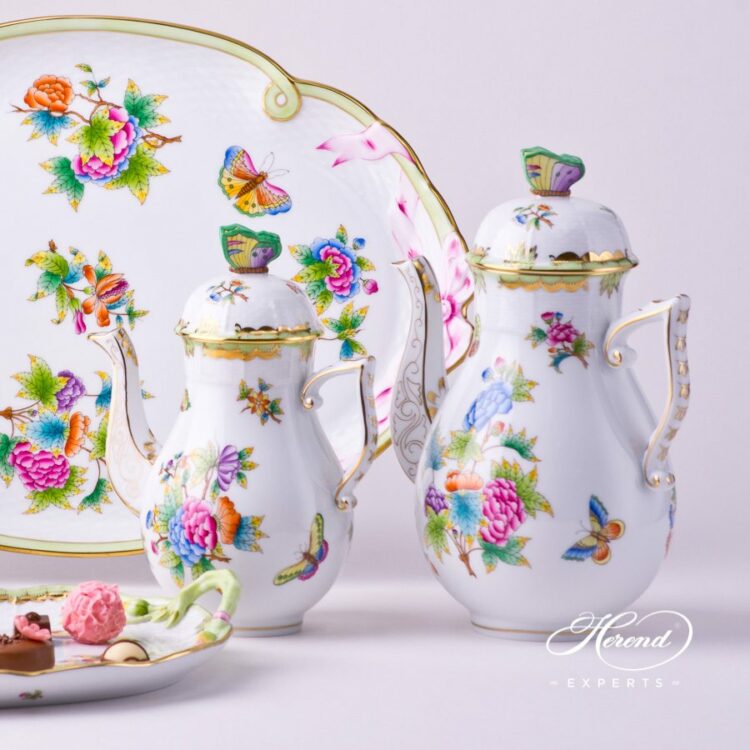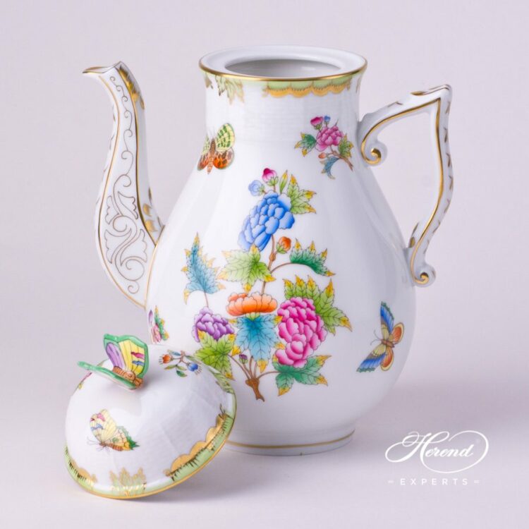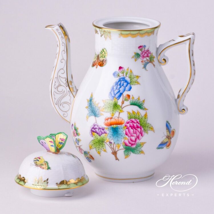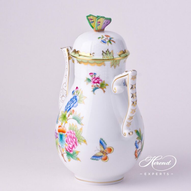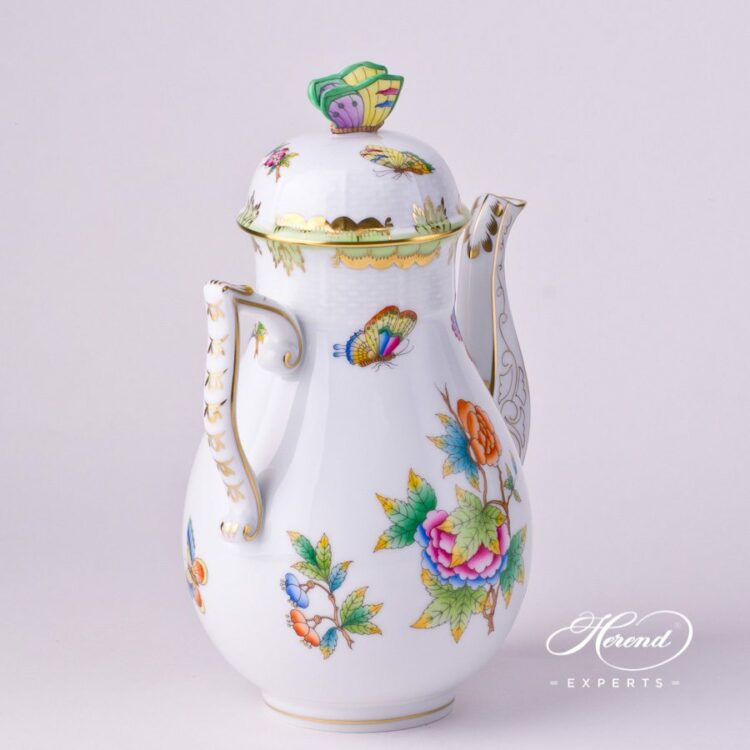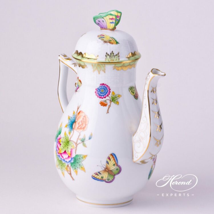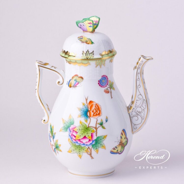 Herend fine china Big Coffee Pot w. Butterfly Knob – Herend Queen Victoria VBO design.