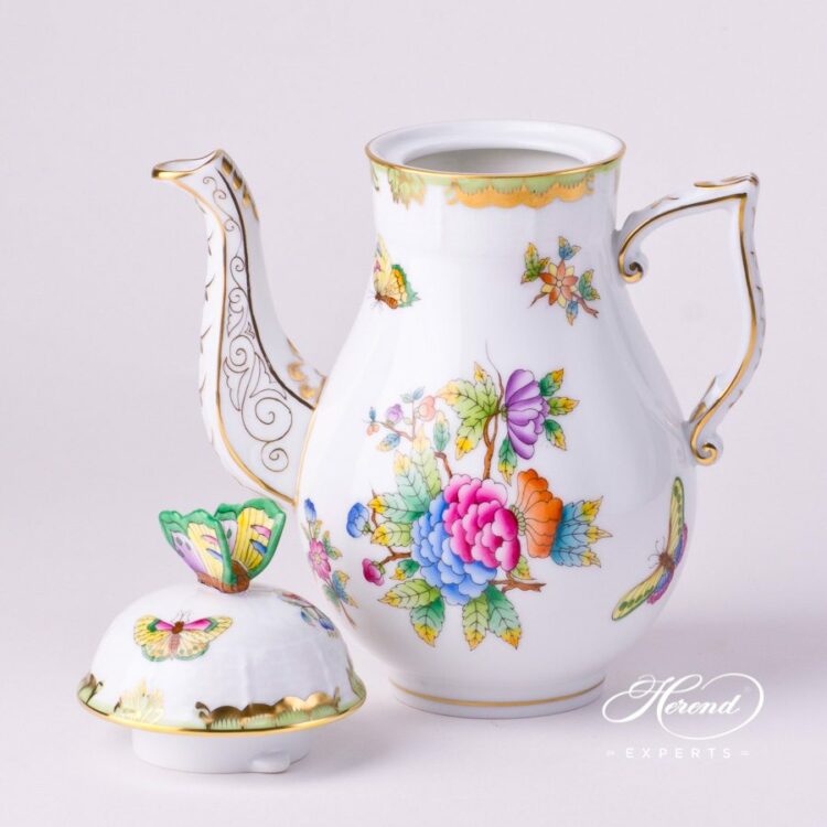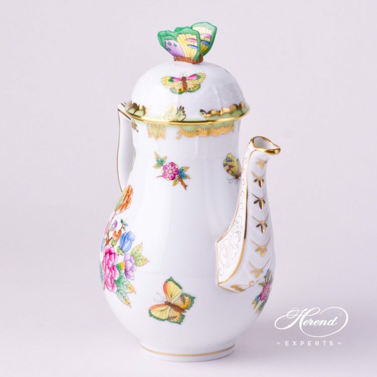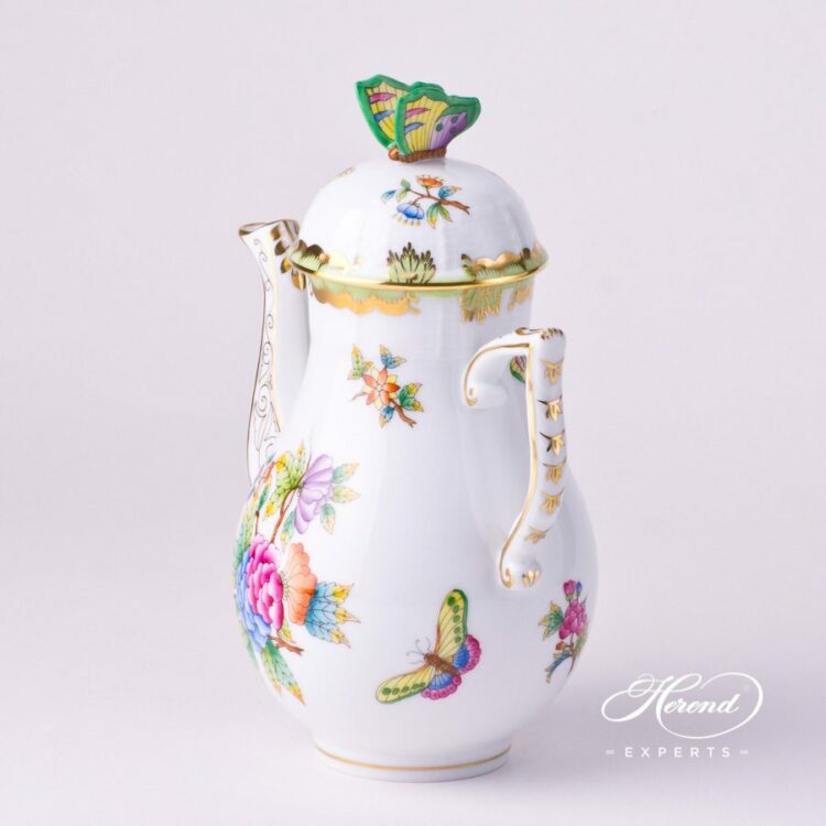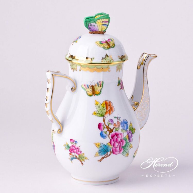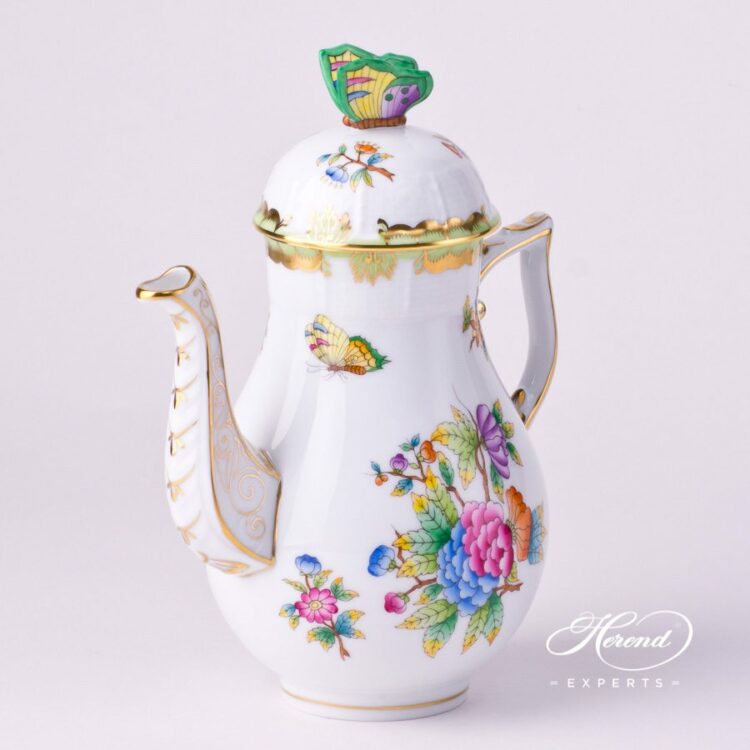 Herend fine china Coffee / Espresso Pot w. Butterfly Knob – Herend Queen Victoria VBO design.