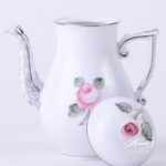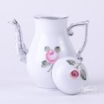 Herend porcelain Coffee Pot with Rose Knob – Herend Vienna Rose Platinum pattern.