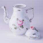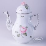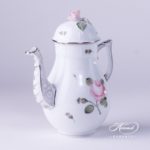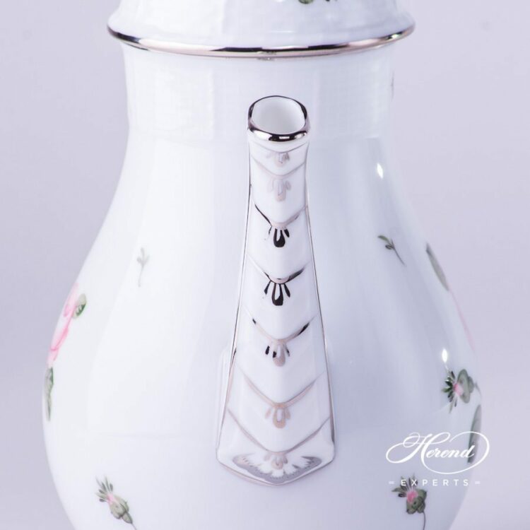 Herend Vienna Rose Platinum decor painted in Rose Flowers and Leaves. This Coffee Pot is an ideal choice to all Vienna Rose Platinum Coffee Sets. Vienna Rose Platinum pattern in Tea, Coffee, Mocha Sets and Dinner Services are available.