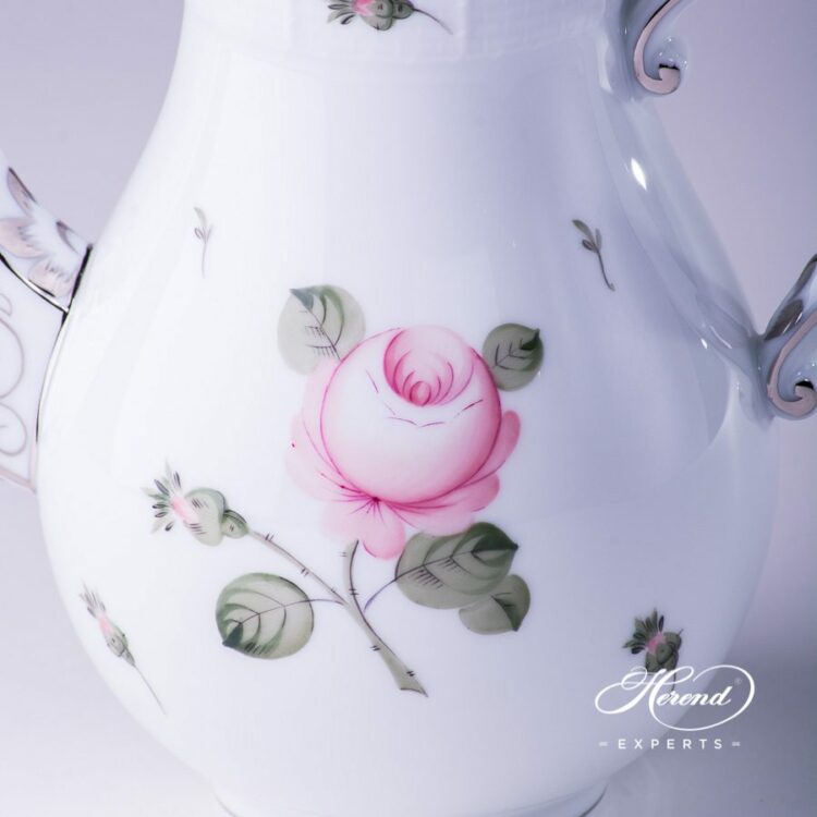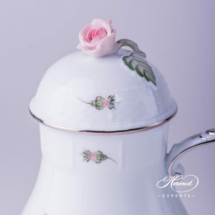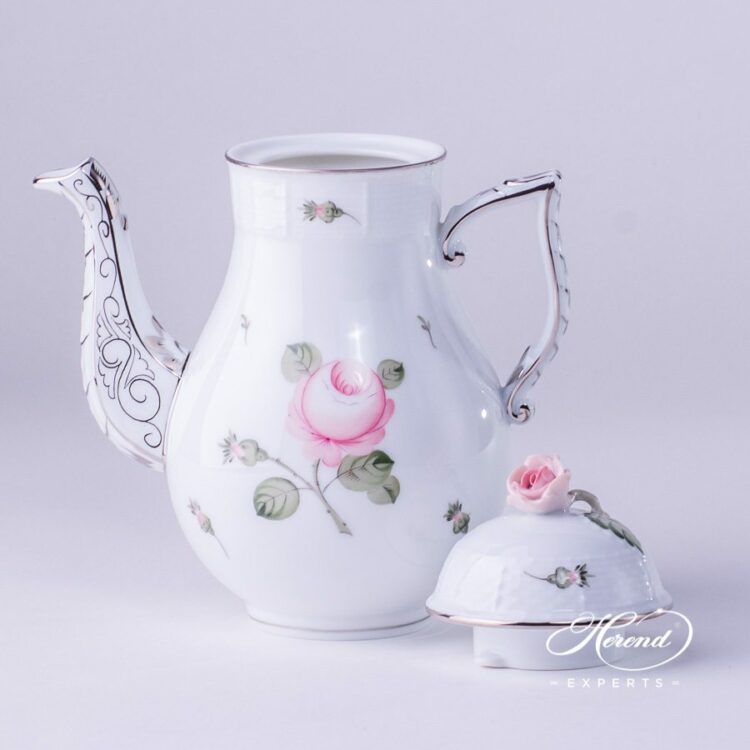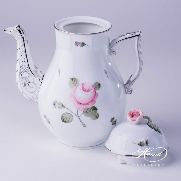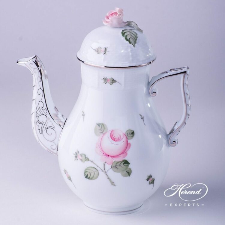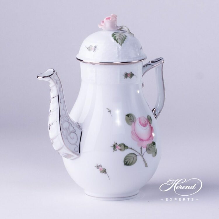 Herend porcelain Coffee Pot w. Rose Knob – Herend Vienna Rose Platinum pattern.
