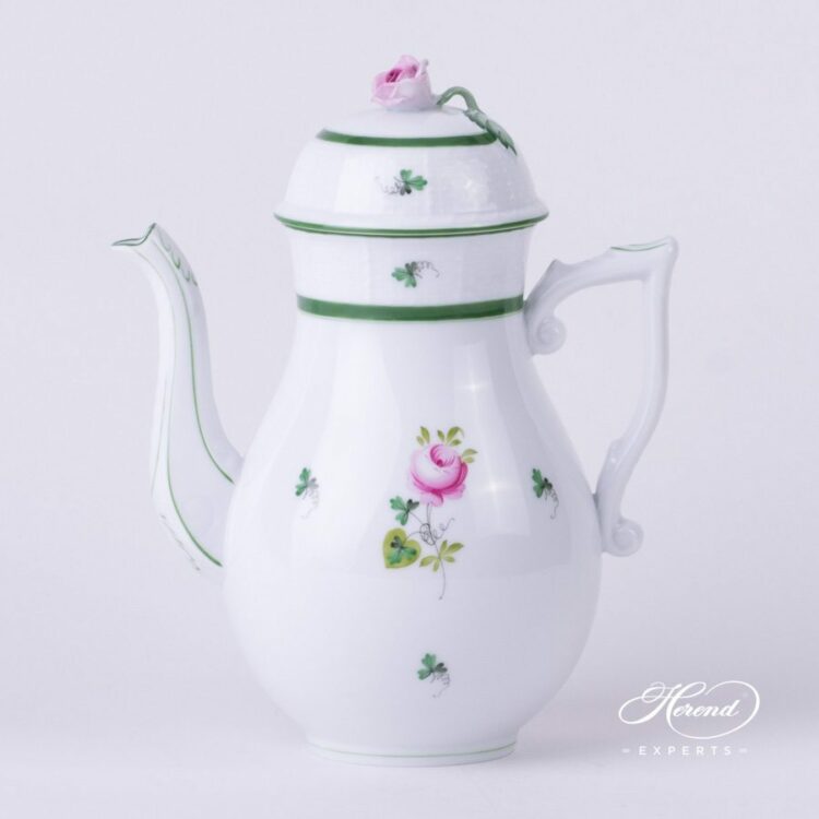 Herend porcelain Coffee Pot with Rose Knob – Herend Vienna Rose VRH pattern.