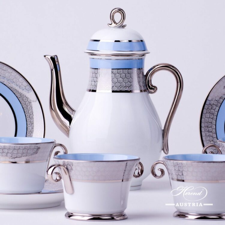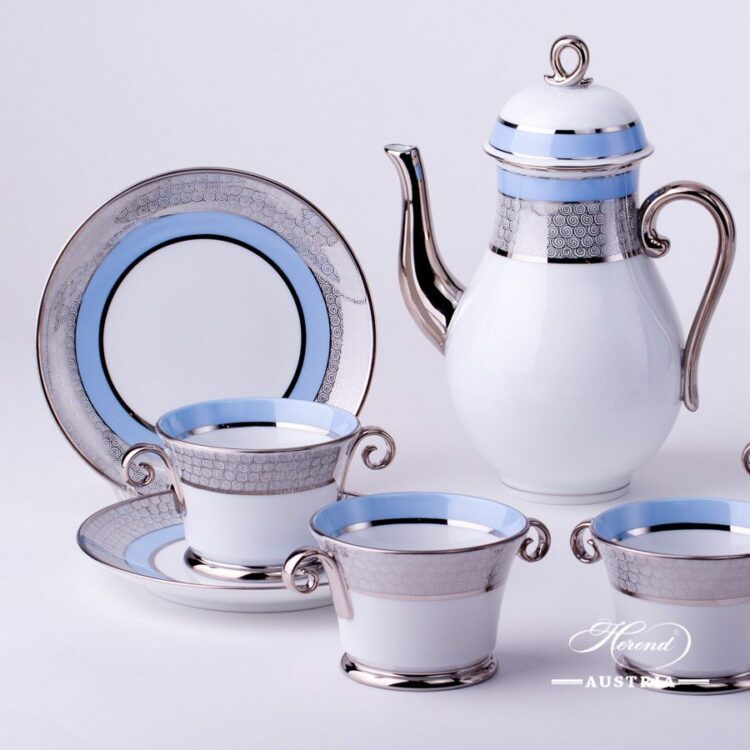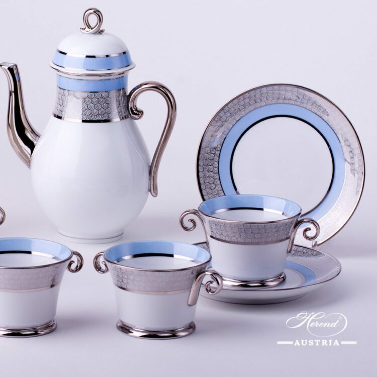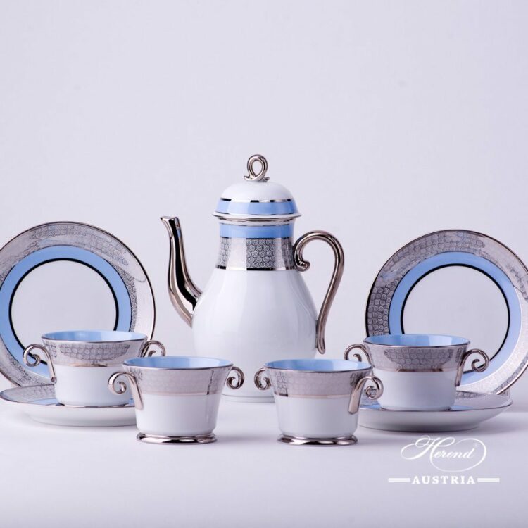Orient Blue with Platinum – ORIENTB-PT pattern – Herend Coffee Set for 4 Persons.