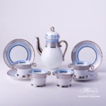 Orient Blue with Platinum – ORIENTB-PT pattern – Herend Coffee Set for 4 Persons.