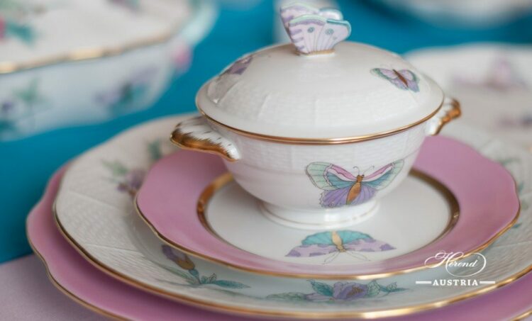 Herend fine china E-520 design – Pink Monochrome design w. Butterfly.