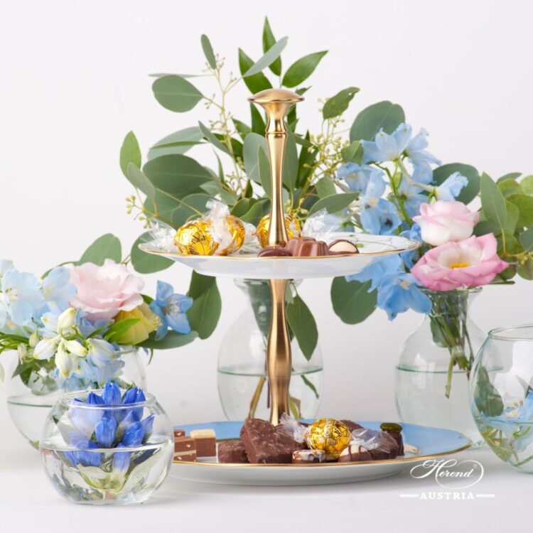 Herend fine china Cake Stand 2 Tier – Herend Nyon / Morning Glory design.