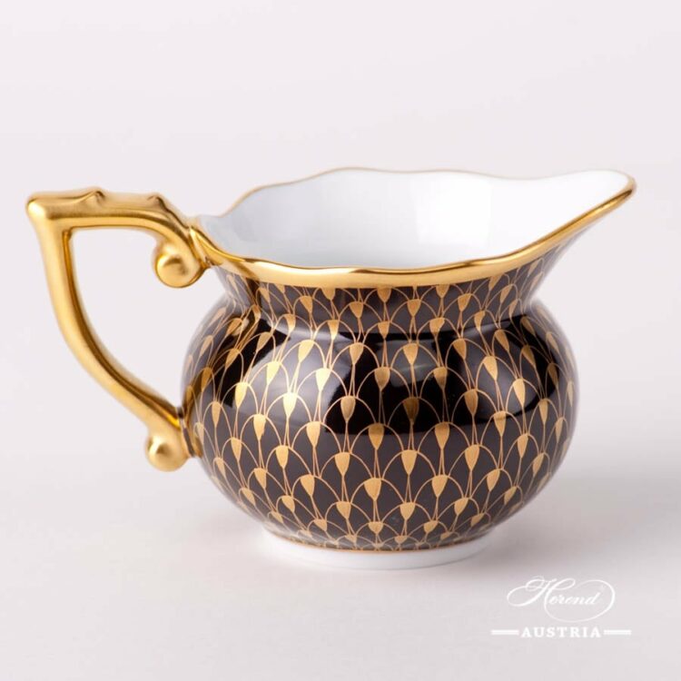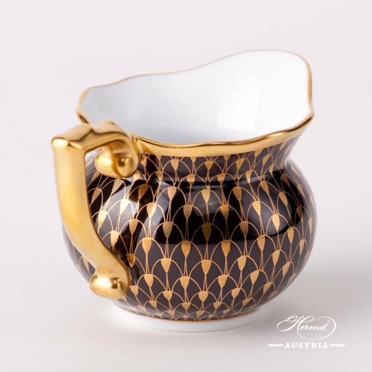 Creamer / Milk Jug – Herend Gold Fish Scale on Black Background pattern.