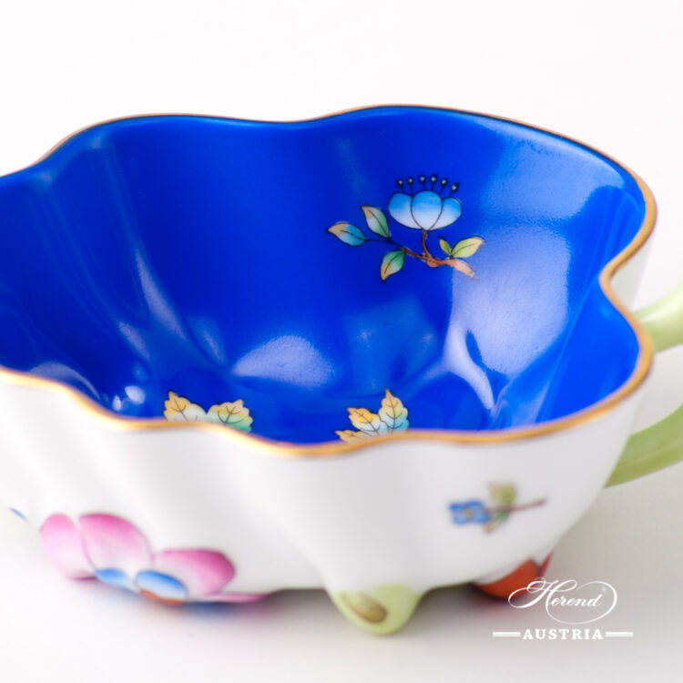 Herend Queen Victoria pattern is painted on blue background.