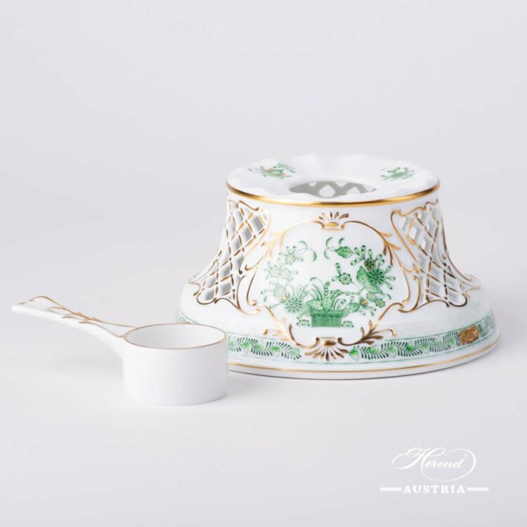 Herend fine china Tea Stove w. Inlay – Herend Indian Basket Green – FV design.