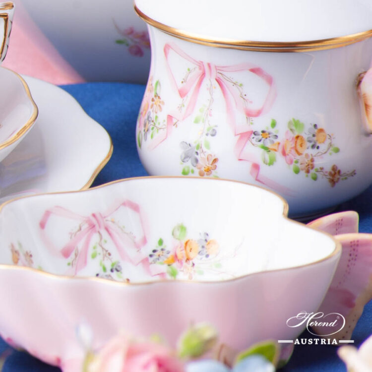 Herend fine china Tea Set for 2 People w. Dessert Plate – Herend Eden Pink – EDENP pattern.