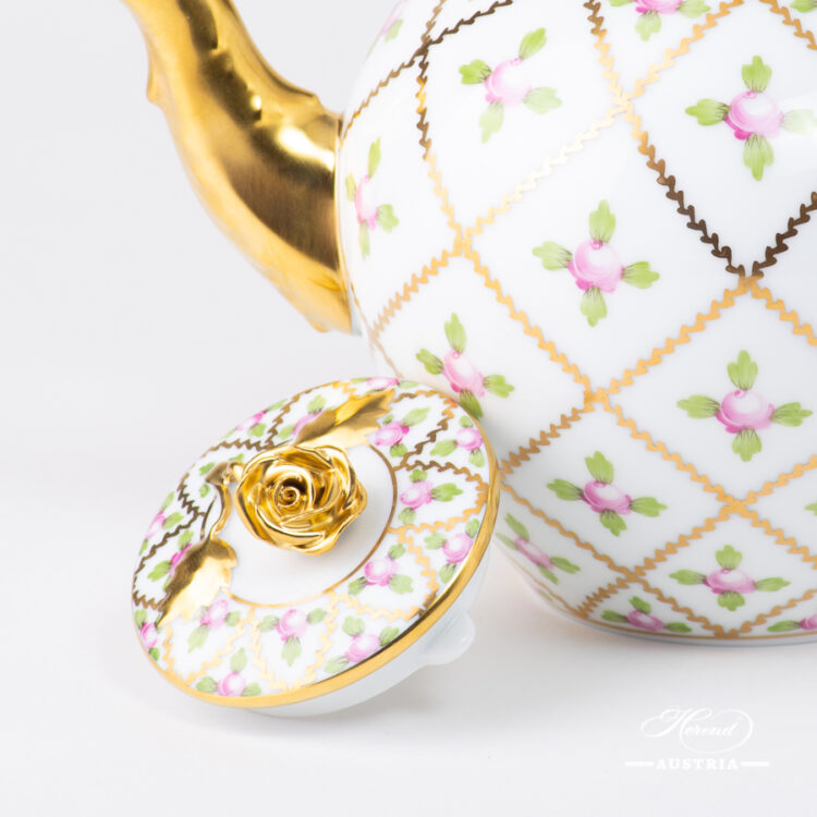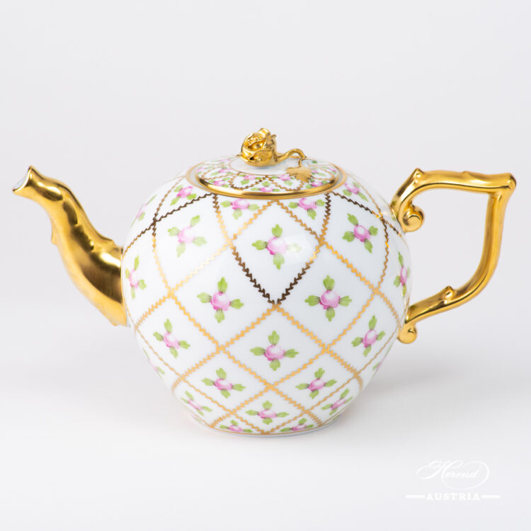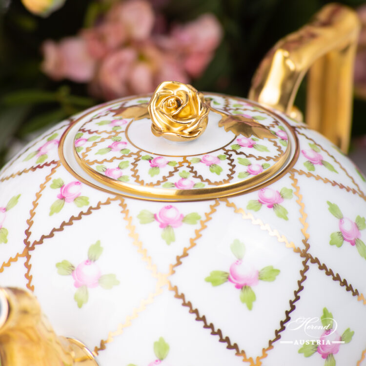 Herend fine china SPROG Teapot with Rose Knob – Herend Sevres Roses pattern.