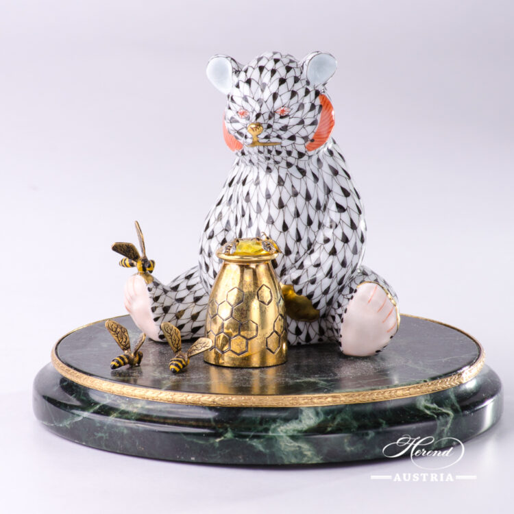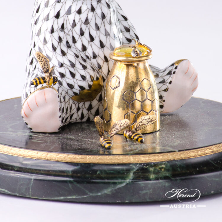 Jewelled Bear Cub sitting on a green marble base with 6 pieces of Bees.