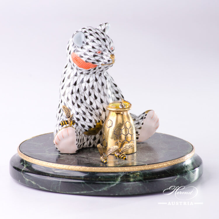 Herend Animal Figurine: Bear Cub 15361-0-00 VHN Black Fish scale pattern.