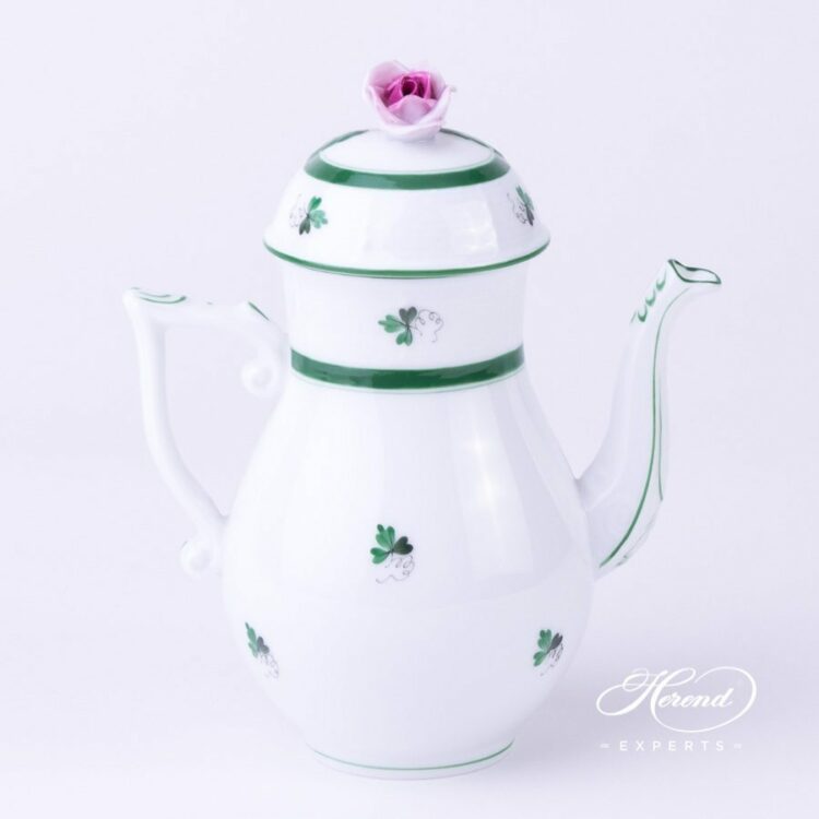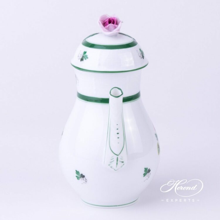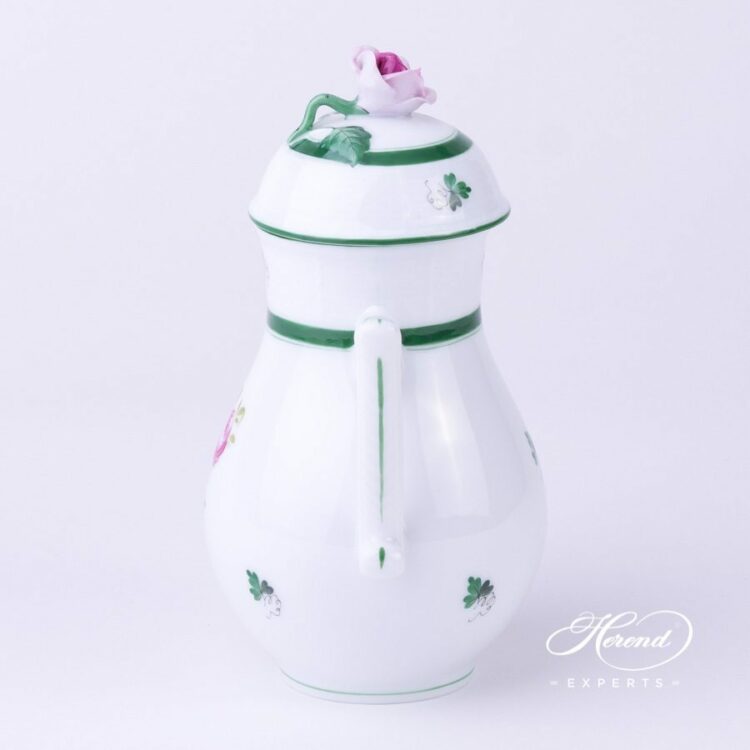Herend porcelain Mocha / Coffee Pot with Rose Knob – Herend Vienna Rose VRH pattern.
