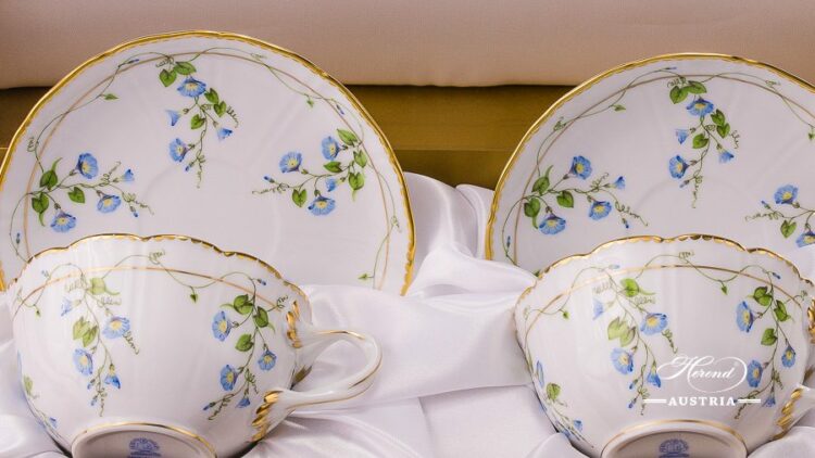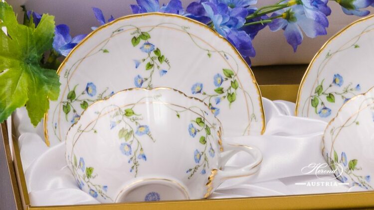 Tea Cup and Saucer for 2 Persons in Gift Box – Nyon / Morning Glory design.