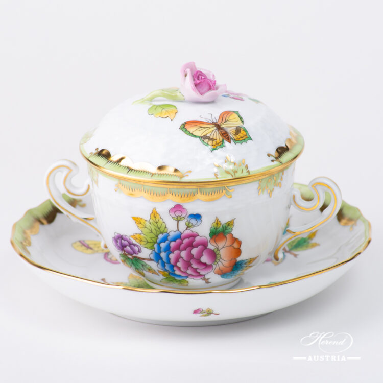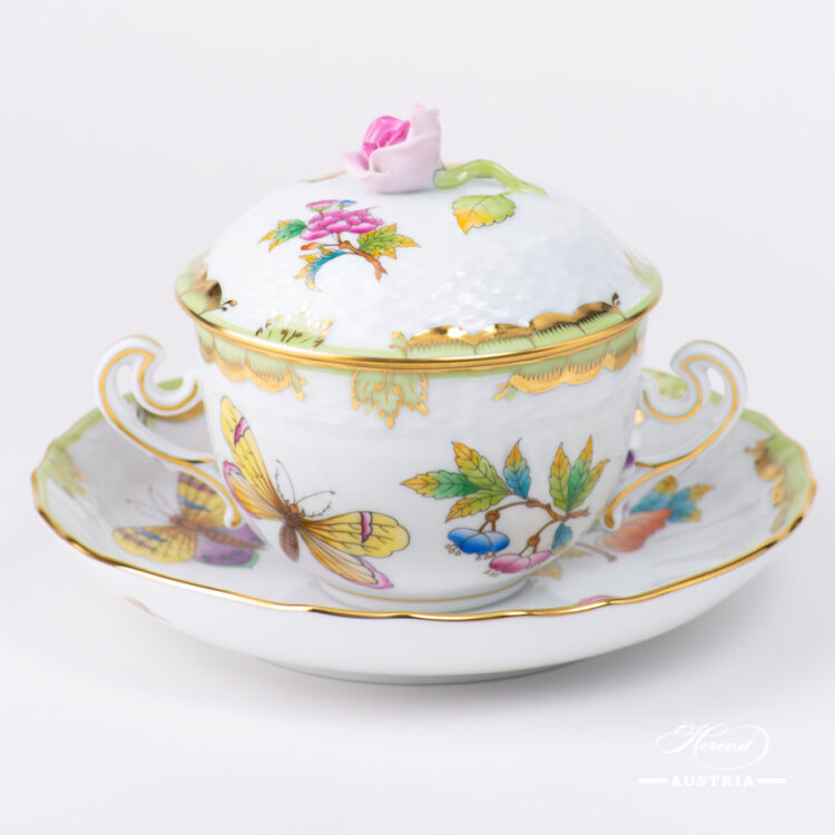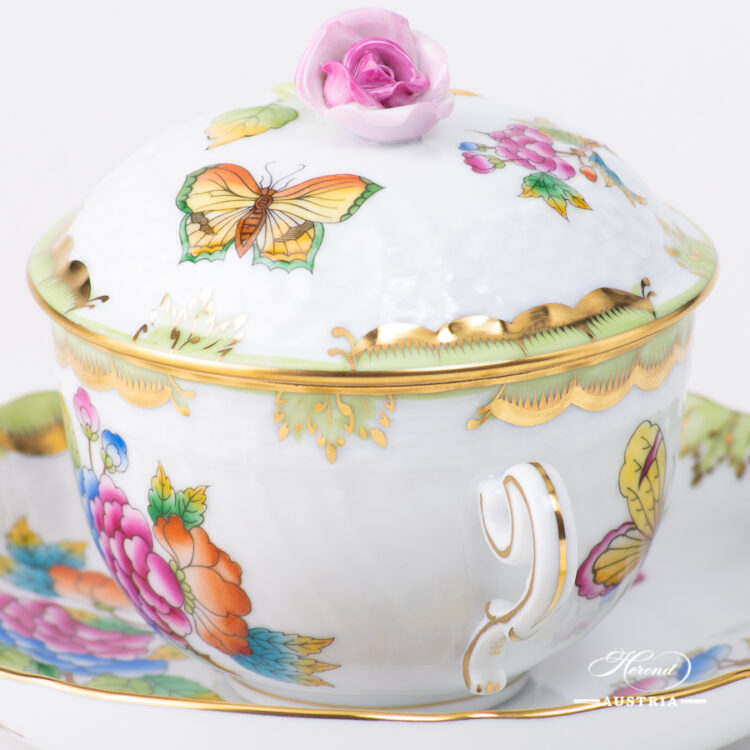 Herend Queen Victoria Green Soup Cup with Saucer and Lid – Herend Queen Victoria VBO design.