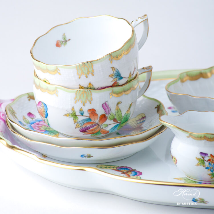 Herend Queen Victoria fine china Tea Set for two – Herend, Queen Victoria Green VBO pattern.