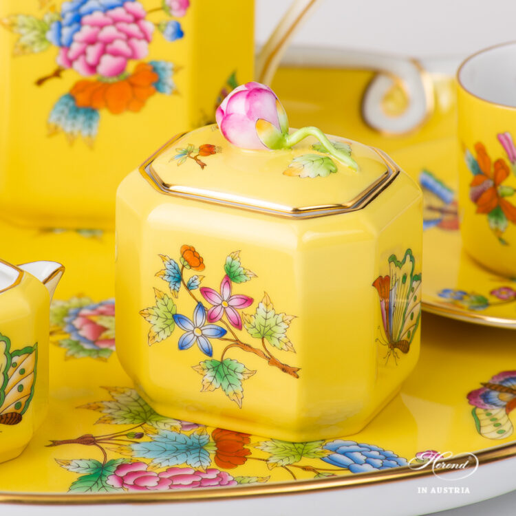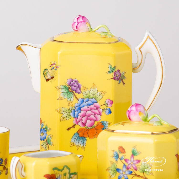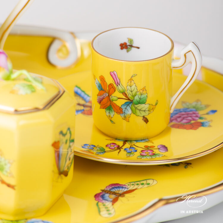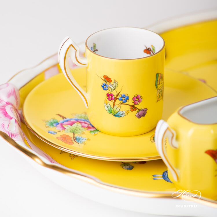 Herend fine china Coffee / Espresso Set for 2 Persons – Herend, Queen Victoria on Yellow Background – VE-FJ pattern.