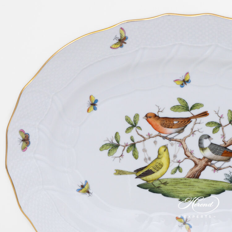 Herend fine china Large Oval Dish or Turkey Platter – Herend Rothschild Bird – RO.